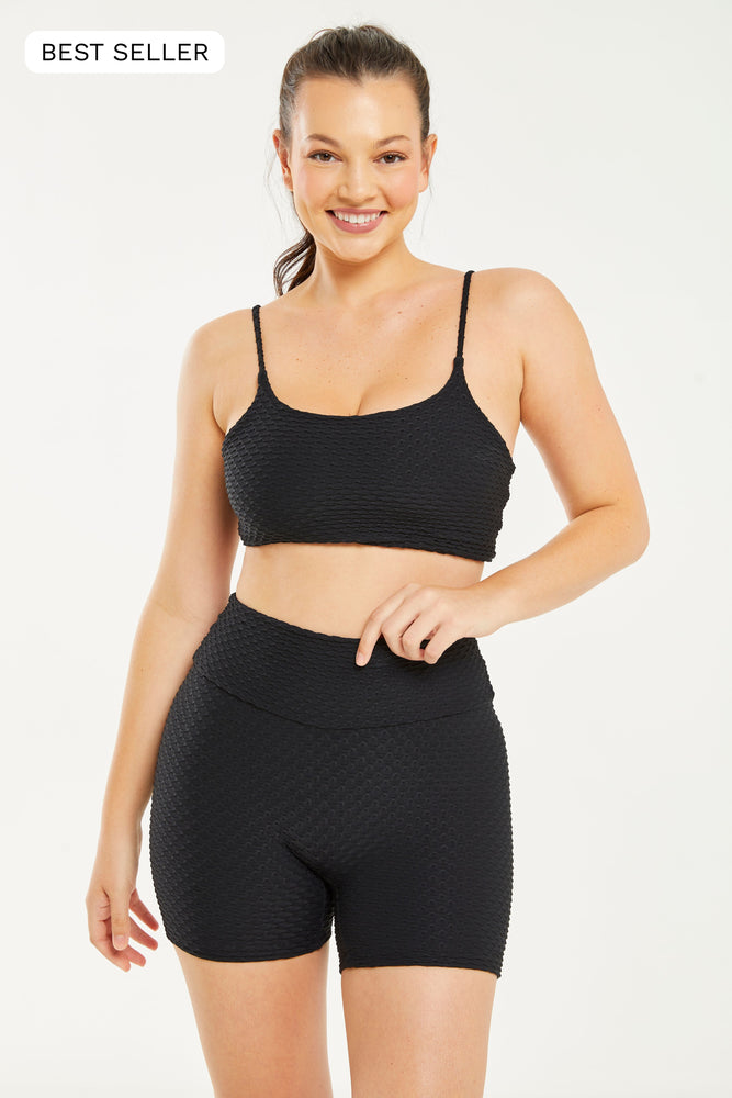 BBB’s signature top-seller has proven to be just as versatile as it is flattering with four-way stretch and a workout-approved, comfortable compression material that molds to your curves while concealing imperfections.